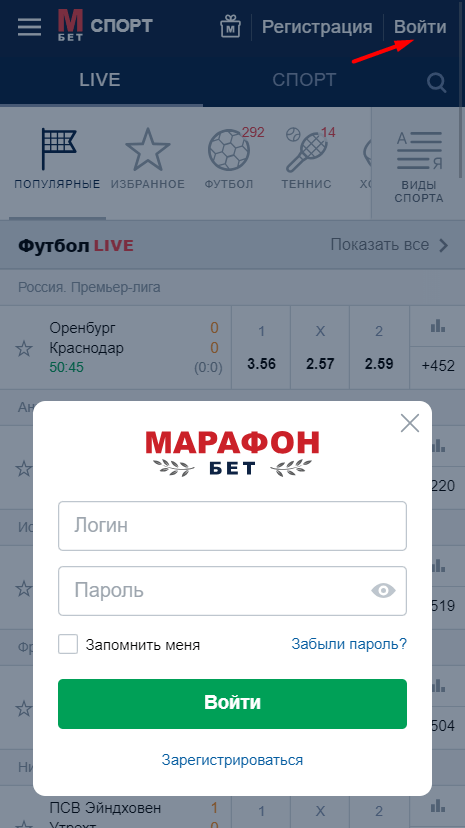 Инструкция по оформлению пари на мобильном сайте Марафон Бет.